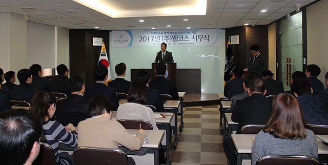 웰코스 김영돈 대표이사는 지난 1월 2일 웰코스 여의도 본사 대회의실에서 개최된 시무식 행사에서 신년사를 통해 각 본부별 강령을 제시하고 격려의 말을 전했다.